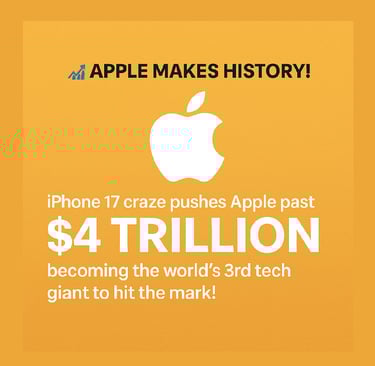 💥 Apple Breaks Another Record! Strong iPhone 17 demand sends Apple soaring past $4 Trillion market cap, silencing AI critics 📊