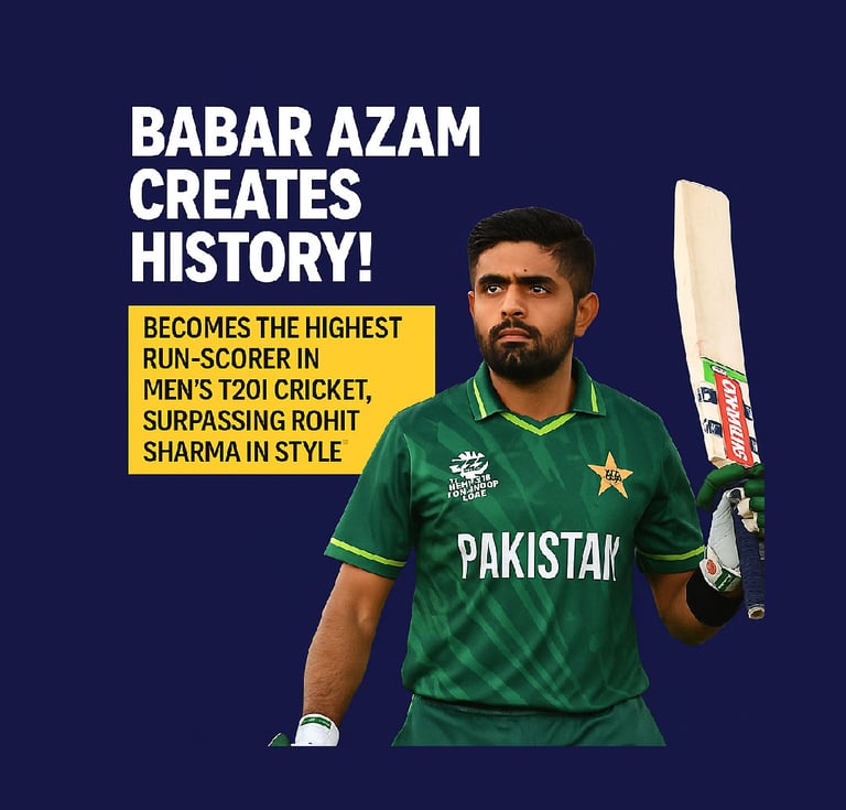 🏏 Babar Azam Breaks Rohit’s Record! Pakistan captain now stands tallest in T20I history with the most runs ever scored!