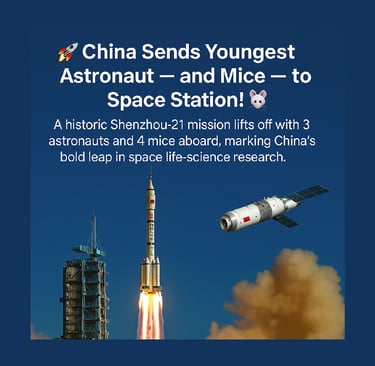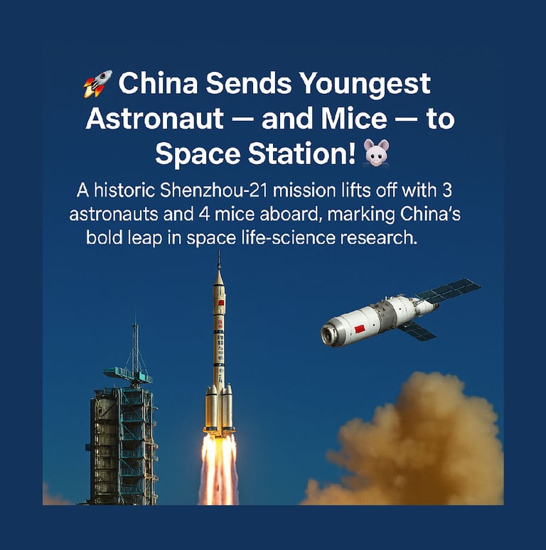 🚀 China Sends Youngest Astronaut — and Mice — to Space Station! 🐭✨