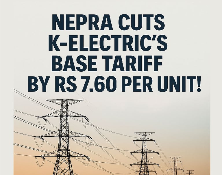 ⚙️ K-Electric tariff reduced by Rs7.60 per unit — NEPRA approves new rates.