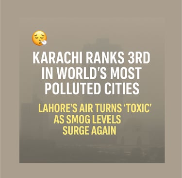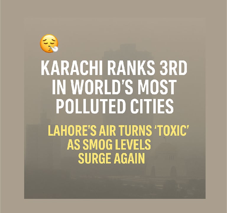 😷 Karachi climbs global pollution list — Lahore not far behind! Air quality plunges to ‘unhealthy’ levels amid rising smog