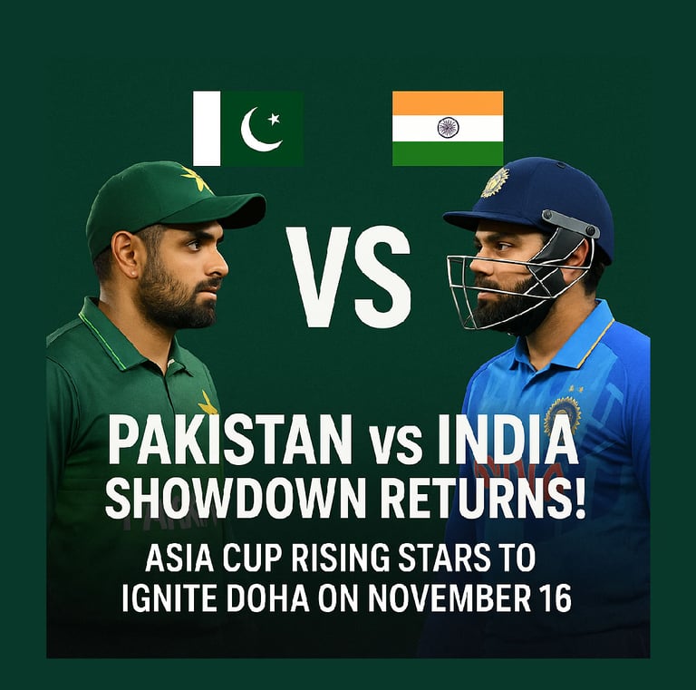 ⚡ Mark Your Calendars, Cricket Fans! Pakistan to Face India in Doha on Nov 16 — Asia Cup Rising Stars Unveiled