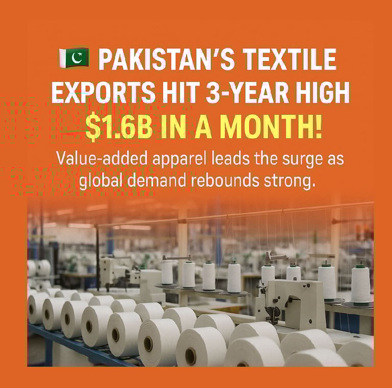 Pakistan’s Textile Comeback: $1.6B Export Boom in September 🌍 Knitwear & denim drive record growth, powering 60% of total exports.