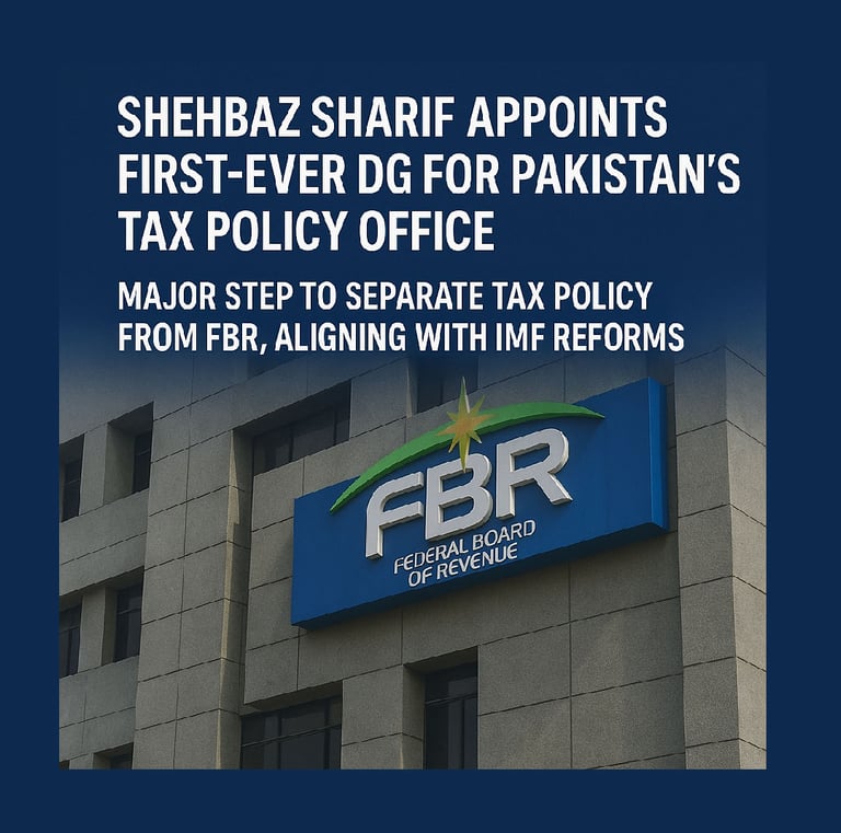 Shehbaz Sharif Appoints First-Ever DG for Pakistan’s Tax Policy Office Major step to separate tax policy from FBR, aligning with IMF reforms